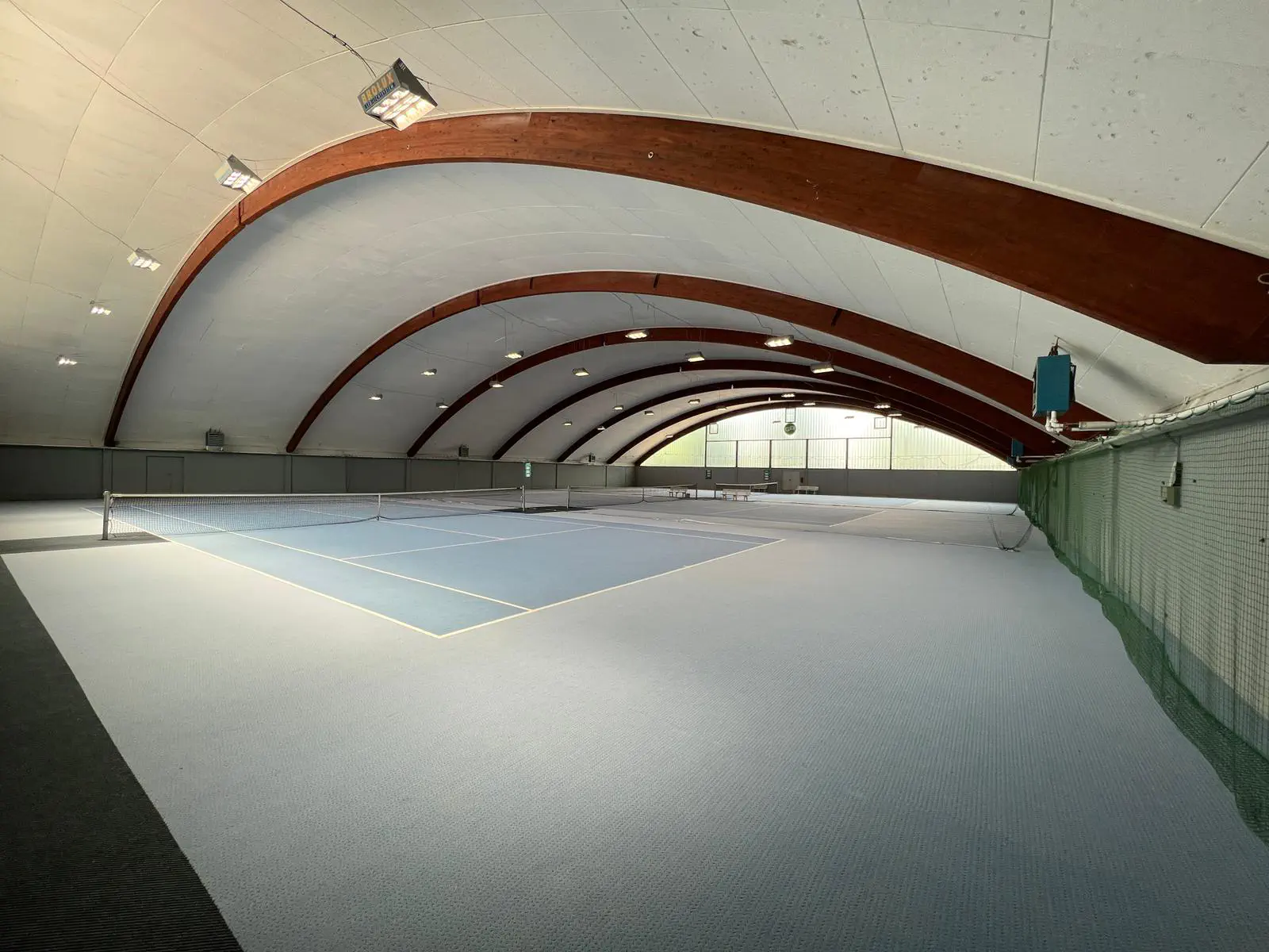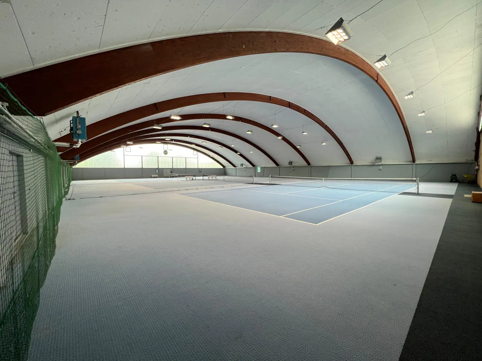 Unsere neu renovierte 3-Feld-Tennishalle ist ganzjährig bespielbar. 2019 wurde die Hallenbeleuchtung modernisiert und leuchtet jetzt jedes Spielfeld mit neuester LED-Technik aus.
